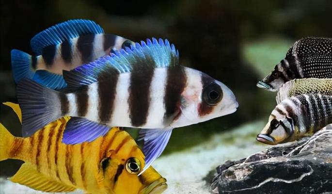 蓝斑拉玛西亚是一种小型热带鱼,身体呈椭圆形,通常有着明亮的蓝色体色和红色背鳍。它们具有独特的脸部模式和颜色斑点,使其成为观赏鱼的理想选择。